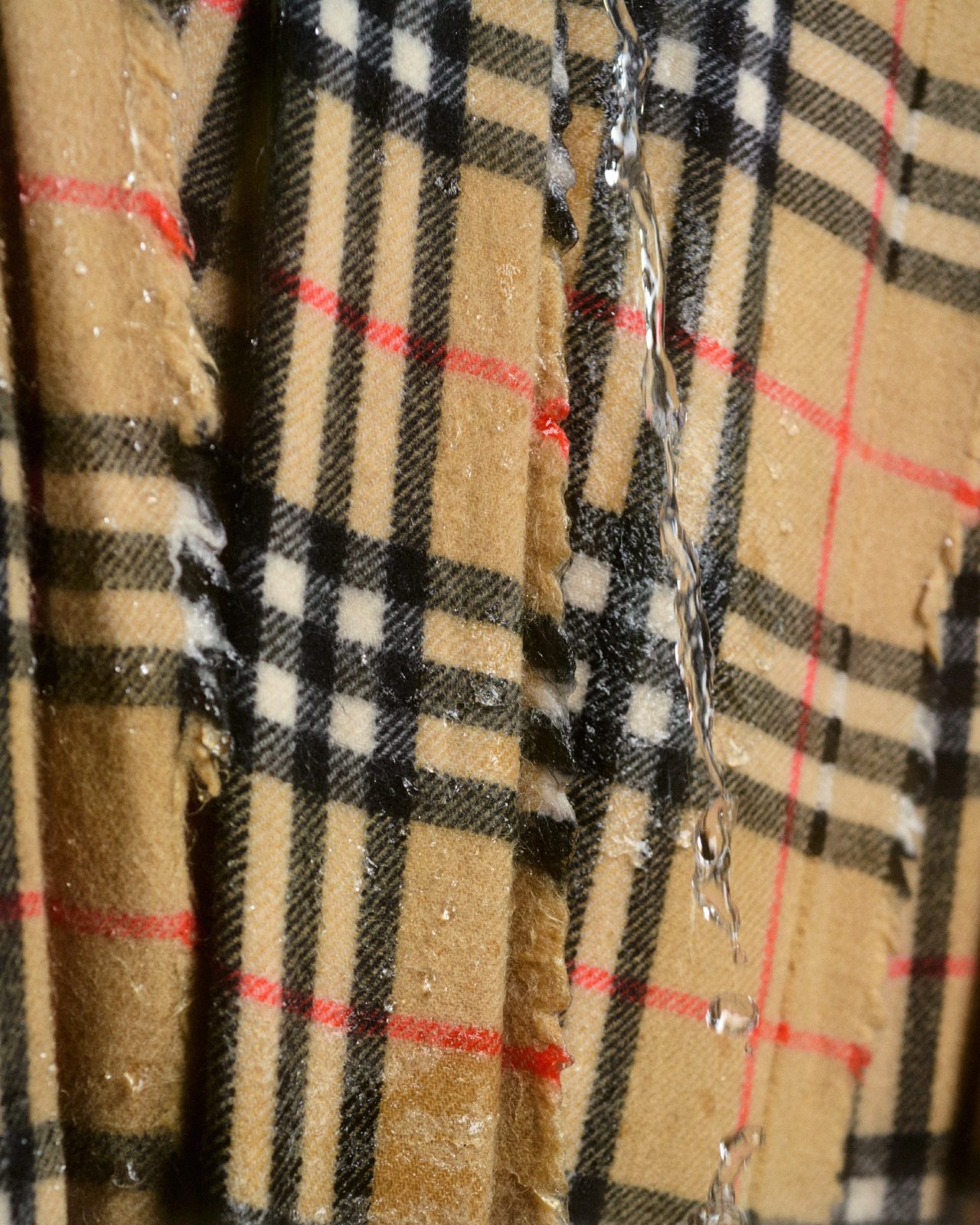 Woven on traditional looms at Johnstons’ Scottish mill, it takes more than 30 steps to weave a single scarf. To achieve the correct Burberry Check colour pattern, the yarns are placed in a precise sequence on the loom. The fabric is washed in natural spring water which flows from the surrounding countryside, and is carefully brushed with teasels (dried flowers) to ‘raise’ the cloth, producing an ultra-soft finish.